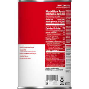 A homestyle soup made with egg noodles and tender chicken in a flavorful chicken stock seasoned with garlic.