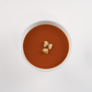 A smooth, creamy soup made with a rich tomato puree and delicately seasoned.