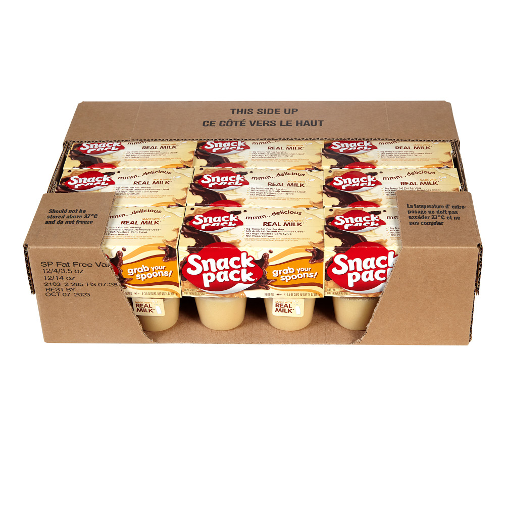 Vanilla fat-free pudding in pre-portioned 3.5 oz cups.